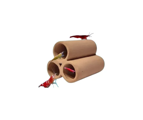 * **ملاذ آمن ومثالي:** يوفر الأنابيب الثلاثة بأقطار مختلفة (5.5 سم * 5.5 سم * 7 سم) أماكن مثالية للجمبري للاختباء، والانسلاخ بأمان، والاسترخاء بعيداً عن أي توتر. وهذا ضروري لصحته النفسية والجسدية ويزيد من فرص تكاثره بنجاح.