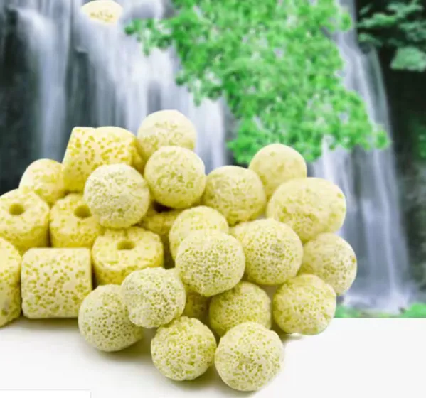 1. **محاربة السموم بفعالية:** تقوم المستعمرات البكتيرية التي تستوطن هذه الكرات بتحويل **الأمونيا السامة** (الناتجة عن فضلات الأسماك وبقايا الطعام) إلى نيتريت، ثم تحوّل بدورها هذا **النيتريت الضار** إلى **نترات أقل سميّة بكثير**، والتي يمكن التخلص منها بسهولة من خلال تغيير الماء الجزئي أو امتصاصها من قبل النباتات المائية.