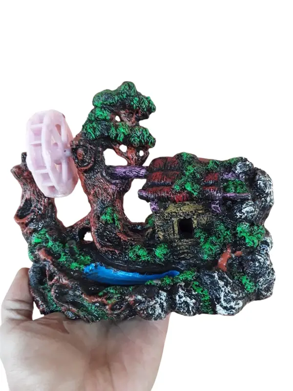 3. **نقطة محورية أخَّاذة:** مع حركة طاحونة المياه الرقيقة وتفاصيل المنزل الدقيقة، ستجذب هذه القطعة أنظار كل من يراها. ستتحول زاوية الحوض إلى نقطة جذب ساحرة تثير إعجاب ضيوفك وتجعل من حوض السمك محور الحديث في غرفتك.